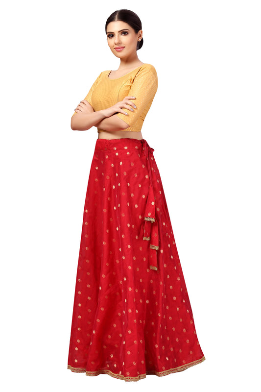 Chanderi Silk Skirt with Crepe Lining —Red, 41" Length