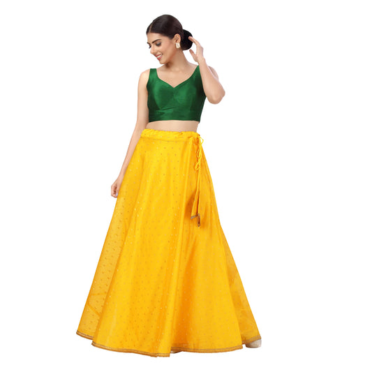Polyester Chanderi Silk Long Skirt Lehenga - Yellow