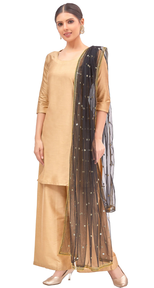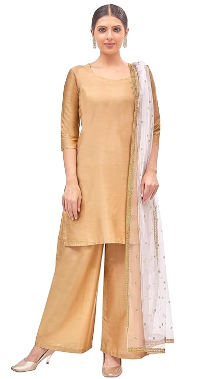 Chanderi Silk Skirt with Crepe Lining — Gold, 43" Length