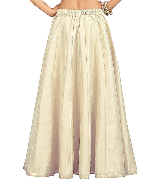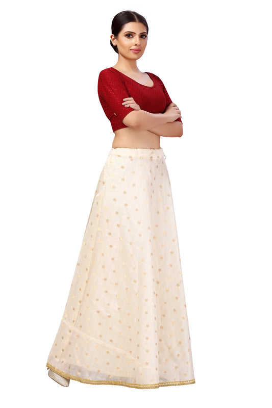 Polyester Chanderi Silk Long Skirt Lehenga - Cream