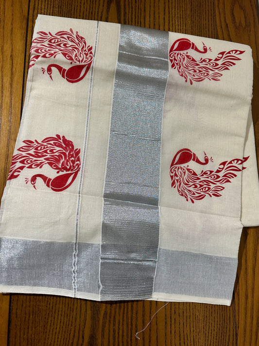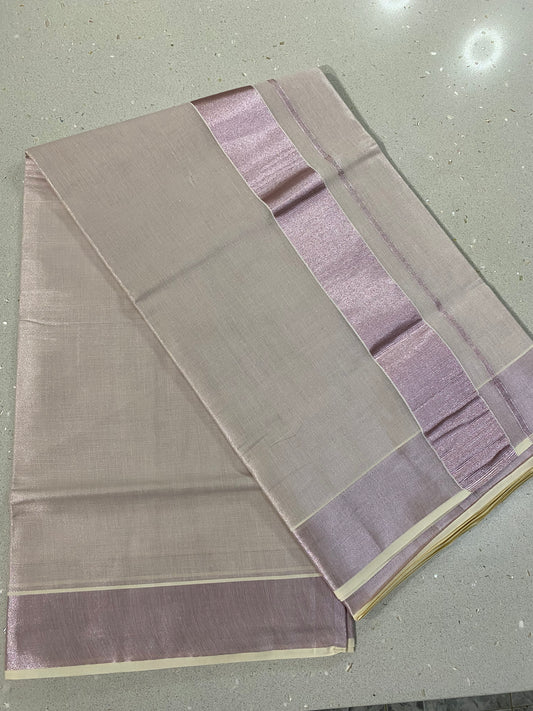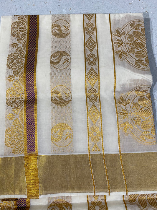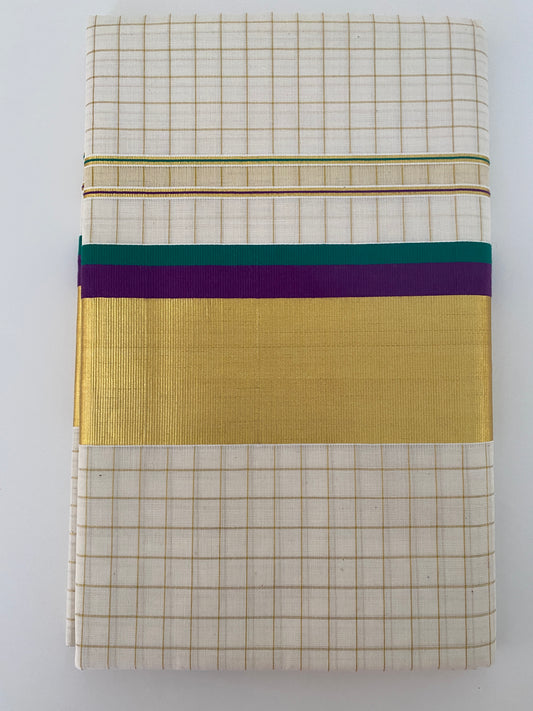 Kerala Onam Set Saree with Violet, Green, and Gold Border