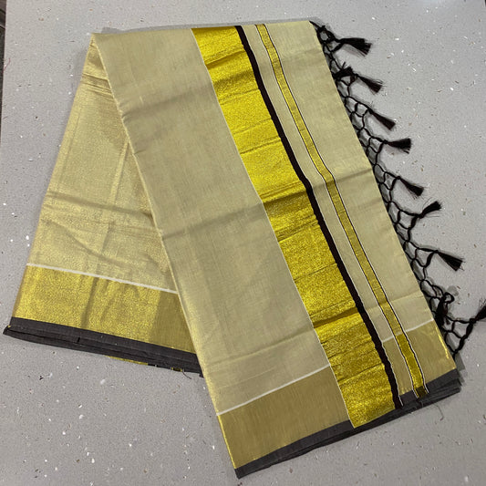 Kerala Set Saree With Brown and Golden Border | Onam Saree