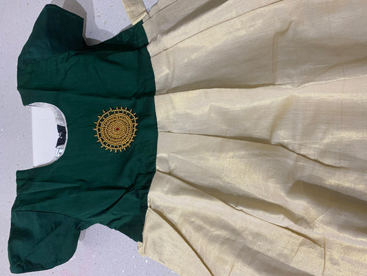 Kerala Onam Set Saree with Violet, Green, and Gold Border