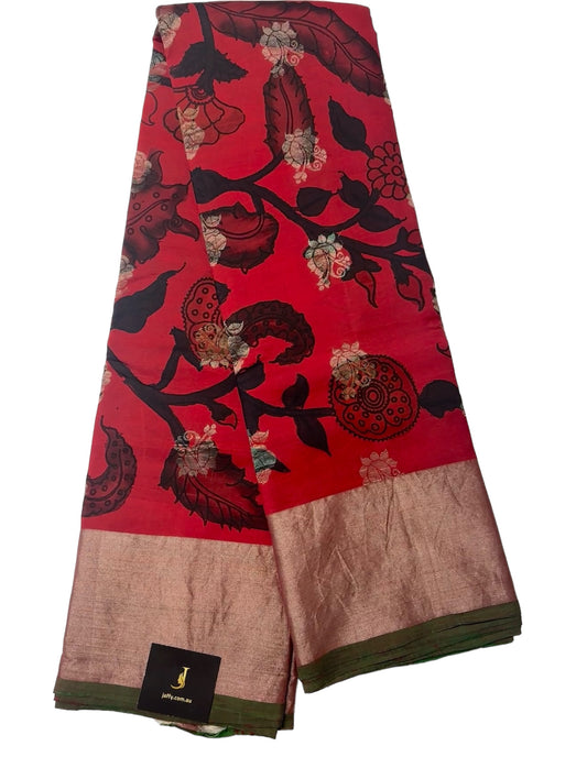 Handloom Pen Kalamakari Pure Kanjivaram Silk Saree