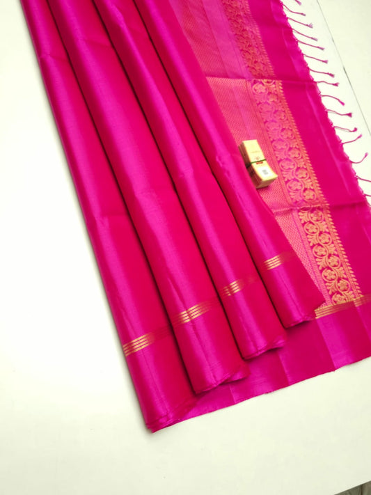 Handloom Pure Soft Silk Saree | Hot Pink | Silk Mark Certified