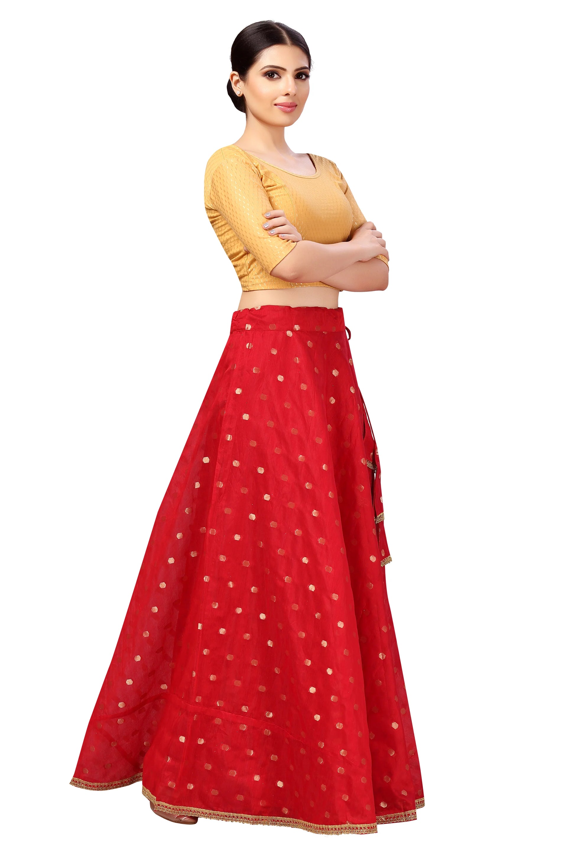 Pair this skirt with a contrasting blouse or a long kurta for a classic ethnic look. Enhance its elegance with dupattas, statement jewellery, or festive accessories to suit the occasion.
